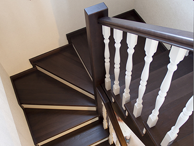 Что касается конструктивного решения, то здесь у нас деревянная закрытая лестница на косоурах из бука и сосны. Установлена лестница в г. Югорск (ХМАО).